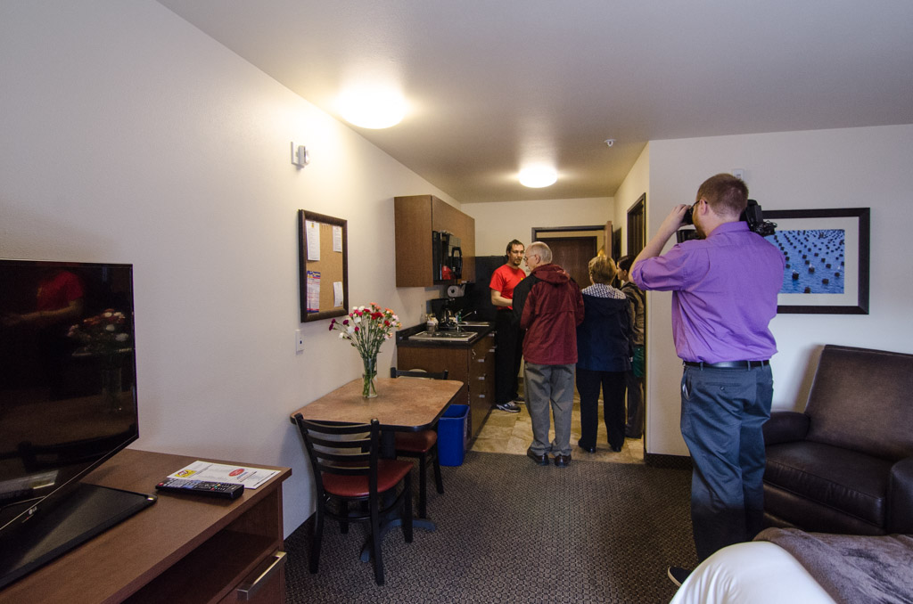 Following the ceremony, we witness the first dollar presentation from MTBA before customized tours of the hotel started. Visitors were given slips to get signed at each tour stop. Once each location was hit, guests returned their slips for a chance to win five great prizes! Visitors enjoyed a chance to see all of the hotel’s amenities including guest laundry and storage facilities and the My Store complete with a variety of foods, beverages, cookware, and utensils. My Place is very proud of their My Store being that it is the largest convenience store found in any hotel. The hotel also just acquired it’s liquor license and will soon start carrying beer and wine in the store.