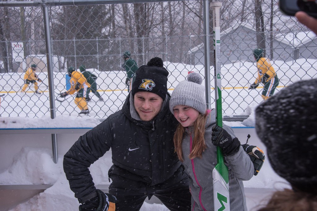 It was a frigid afternoon in the township, but that didn’t stop people from coming out, including a few little “future NMU Hockey players”. Kids brought their jerseys and hockey sticks for the team to sign and told their local stars of their own aspirations to be on the NMU Hockey Team one day!